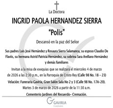 Actualizada Pasado mañana el funeral de Ingrid Hernández Sierra