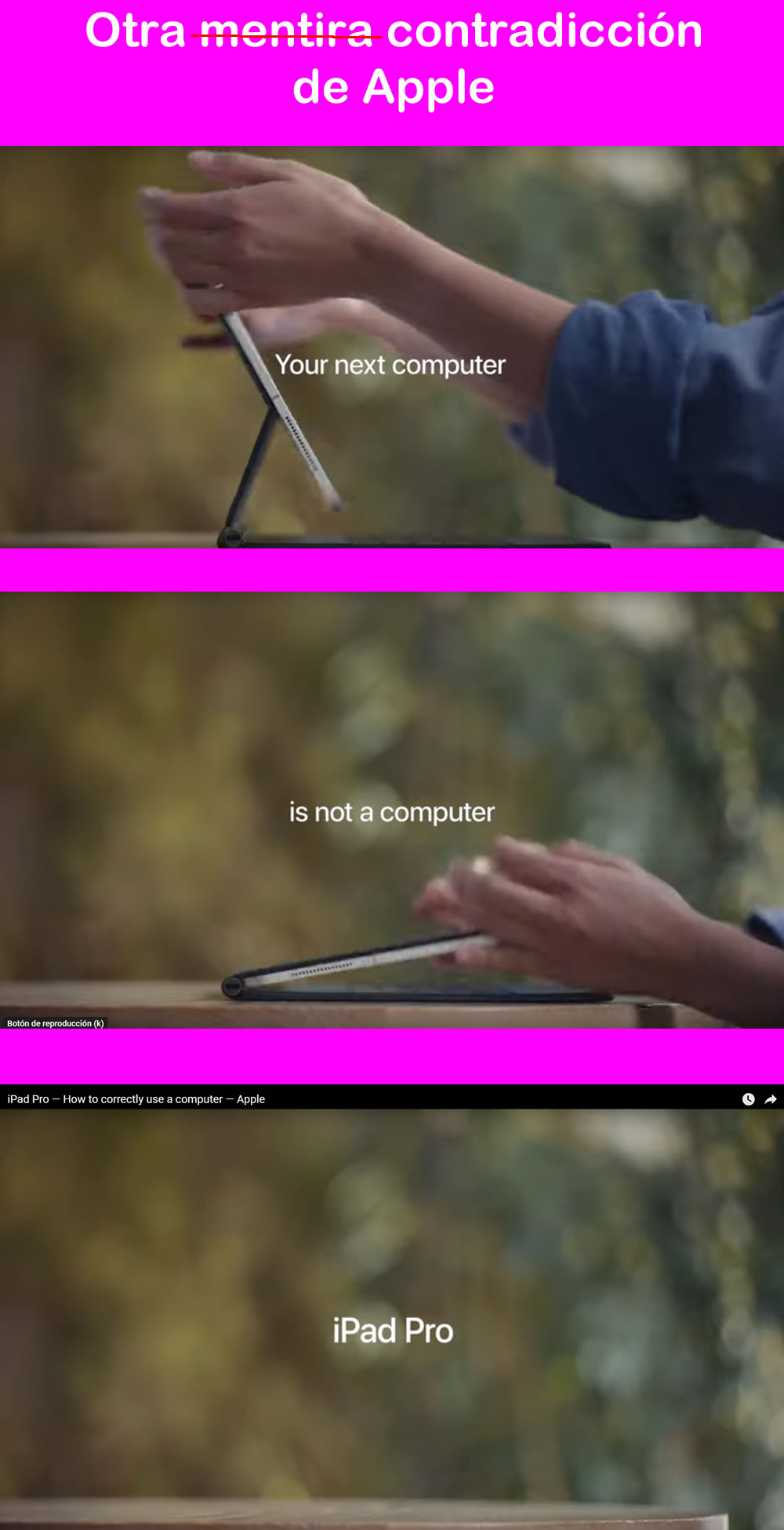 Apple se vuelve a contradecir en su publicidad, al afirmar que su nuevo iPad será su próximo computador… pero que no es computador. ¿Al fin es o no es un computador?